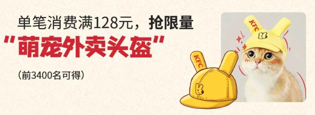 如今肯德基给了这些网友一个拥有兔子耳朵的机会。品牌和美团合作,推出了限量版“萌宠外卖头盔”。于是年轻人又开始抢购,纷纷表示“我能输,但我的小猫咪不能输” 。