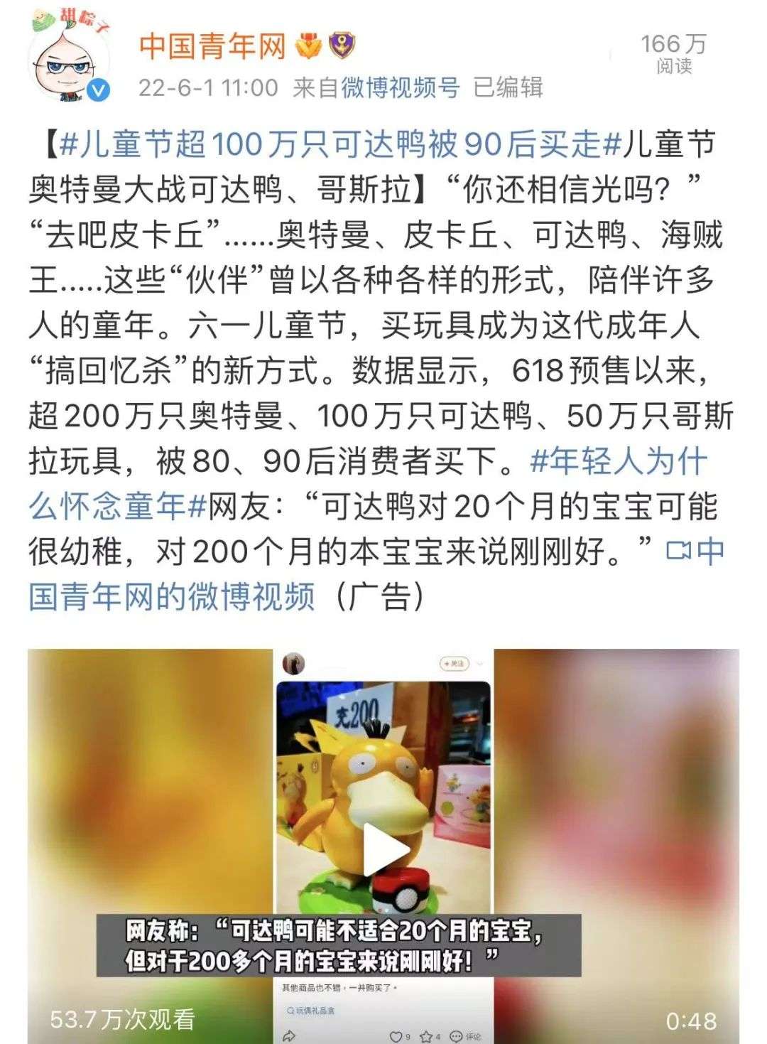 儿童节有超100万只可达鸭被90后买走 图片来源:微博截图