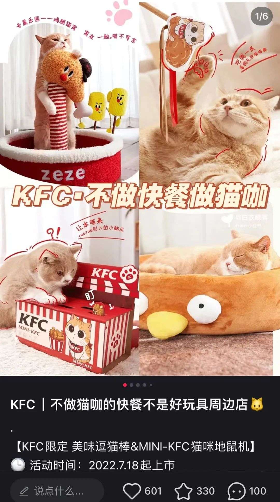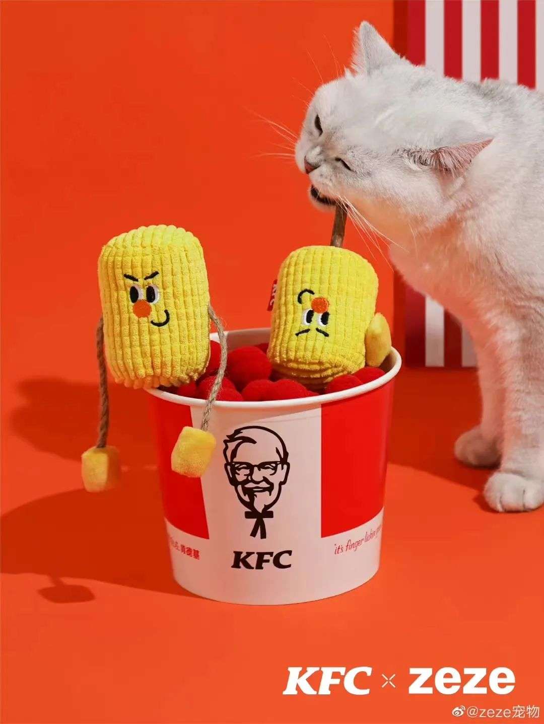 有用户表示,“我的宠物永远缺一个新玩具”。肯德基似乎听到了年轻人的发言,在推出和美团联名的限量头盔后,紧接着在7月21日推出zeze联名款玉米棒,并于7月25-27日推出和zeze合作的抓柱猫窝&鸡腿仔猫窝。