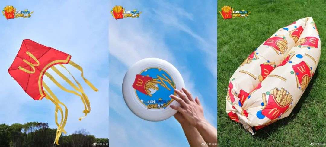 7月22日,麦当劳宣布发售夏日限定系列周边,包括风筝、飞盘和充气沙发,都要在户外活动场景使用。