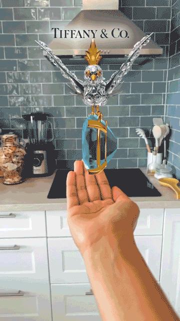 除此之外,即使没有身处伦敦,来自全球各地的Snapchat用户都可以在AR滤镜中看到Tiffany标志性宝石《石上鸟》。这只著名的Schlumberger 鸟甚至还会“飞入”周围的场景中,用户可以伸手接住它。