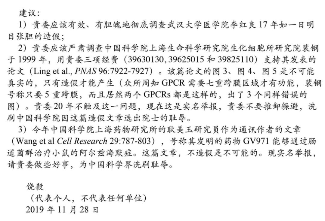 饶毅在举报信中称,“不造假是不可能的”、“请贵委做些好事,为中国科学界洗刷耻辱”。