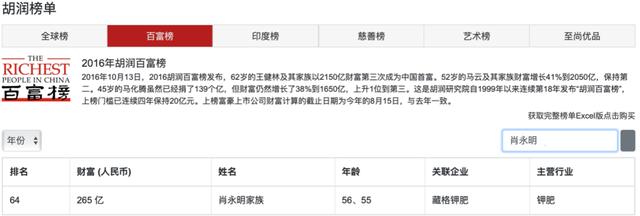 2016年,公司上市,肖永明其身家就飙升到了265亿元,一跃成为青海省首富。