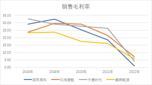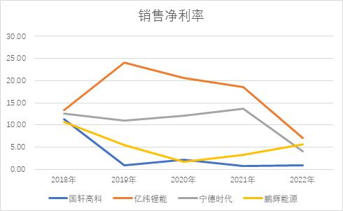 锂电池厂商的整体盈利水平也并不乐观,如鹏辉能源和国轩高科,确实属于挣扎在盈利边缘,与车企盈利水平相当,宁德时代的盈利水平较为稳定,2021年销售净利率为13.7%。亿纬锂能的销售净利率一直高于宁德时代,这主要是因为,亿纬锂能的锂原电池(一次锂电池,且被设计为不可充电的电池)的毛利率水平比较高,毛利率在40%以上,这部分收入占总营收的比重已经从2019年的29.51%下降到了2021年的10.96%。