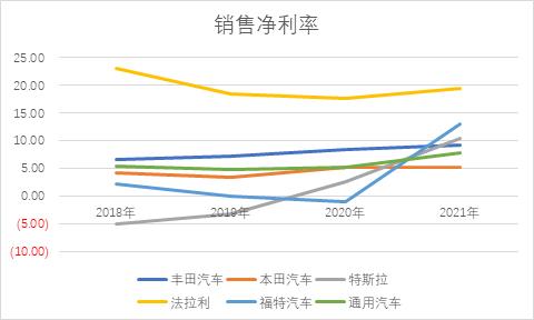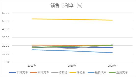 再看国外的车企,除法拉利这种定位于赛车和运动跑车的车企有着超50%的毛利率外,大多数车企的毛利率保持在20以内,其中本田汽车毛利率稳定在20%以上,特斯拉在2020年的毛利率达到了21.02%,领先于老牌车企。