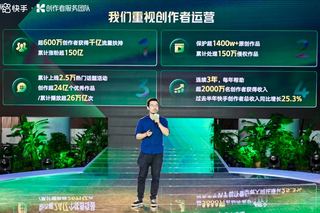 在日常的沟通和观察中,平台也发现了创作者们面临的挑战。在光合大会上,快手高级副总裁、主站业务负责人王剑伟就指出:“流量和变现是创作者面临的两大最核心问题,其本质是创作者如何从‘创作’到‘持续创作’,以及如何从‘扶持’到‘持续经营’。”