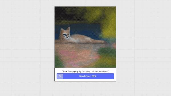 输入“一只猫在湖边露营,莫奈画风”,AI很快生成出图片