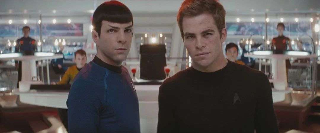 ▲电影《星际迷航》,库克舰长和史波克在舰内