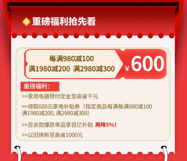 在线上,苏宁易购于8月15日启动“家电百亿补贴”计划,除了标有“百亿补贴”的百余款爆款单品,用户登陆后还可领取不同优惠力度的600元补贴券,享受折上折的优惠。