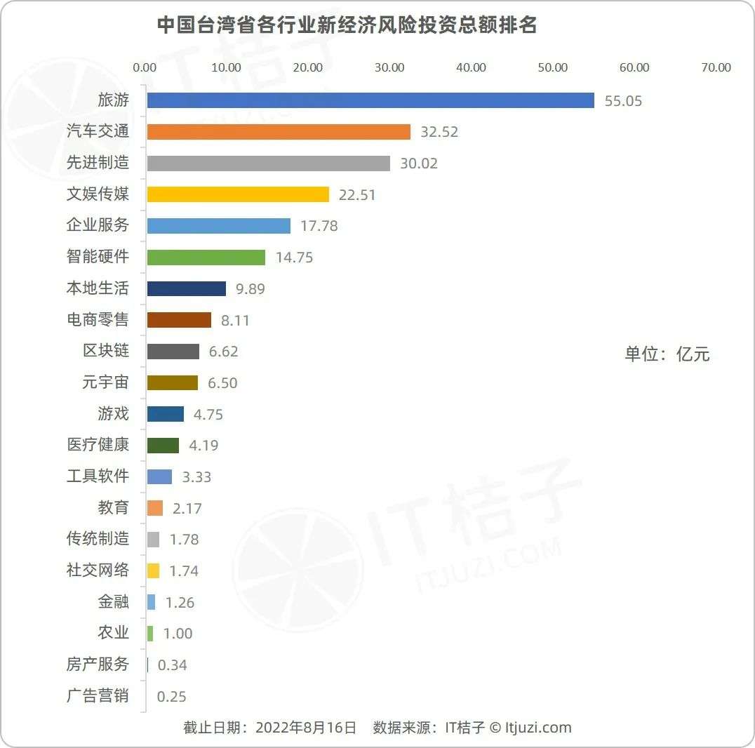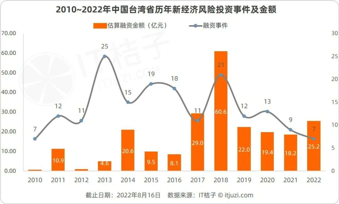 据IT桔子数据,中国台湾的整体投资事件少,仅有181起。