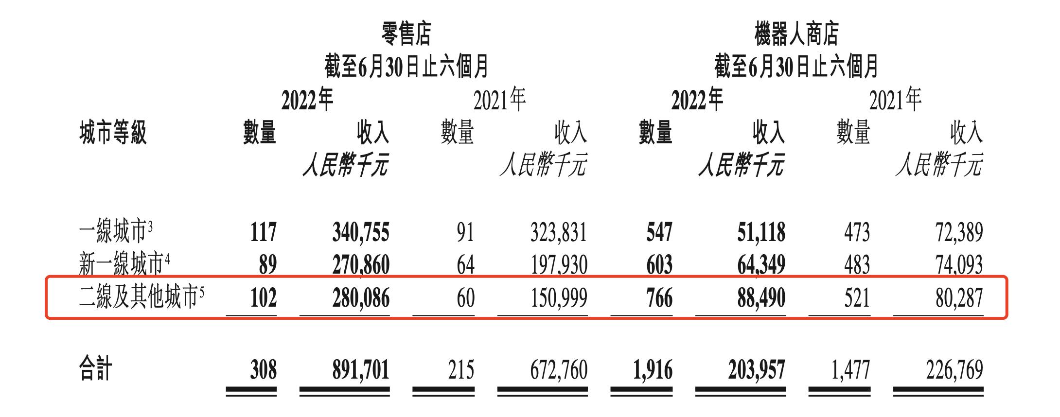 机器人商店渠道影响更深,过去半年相关收入出现负增长。下沉市场可能是唯一的安慰剂,二线及其他城市的收入暂时保持了正增势头。