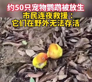 有居民接到微信群业主求助:有人在公园放生了50多只宠物鹦鹉,很多鹦鹉翅膀都折断了。