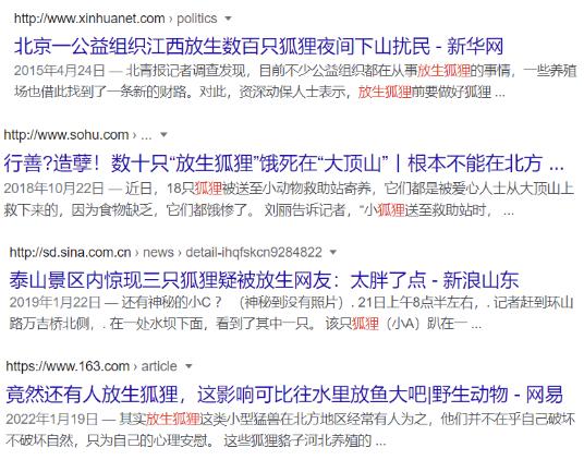 数十年间,地点不一,放生狐狸的行为从未停止。