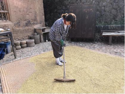 汤汤在晒稻子