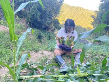 逐渐地,她开始在爬山时健步如飞,开始跟每一棵杂草较劲,开始被人误认成“村里妇女”。这时候,她觉得自己真的融入山里,是个名副其实的“庄稼人”了。