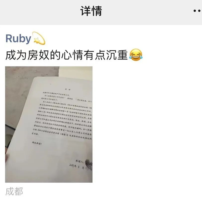 ▲ 签购房合同当天Ruby发了一条朋友圈纪念