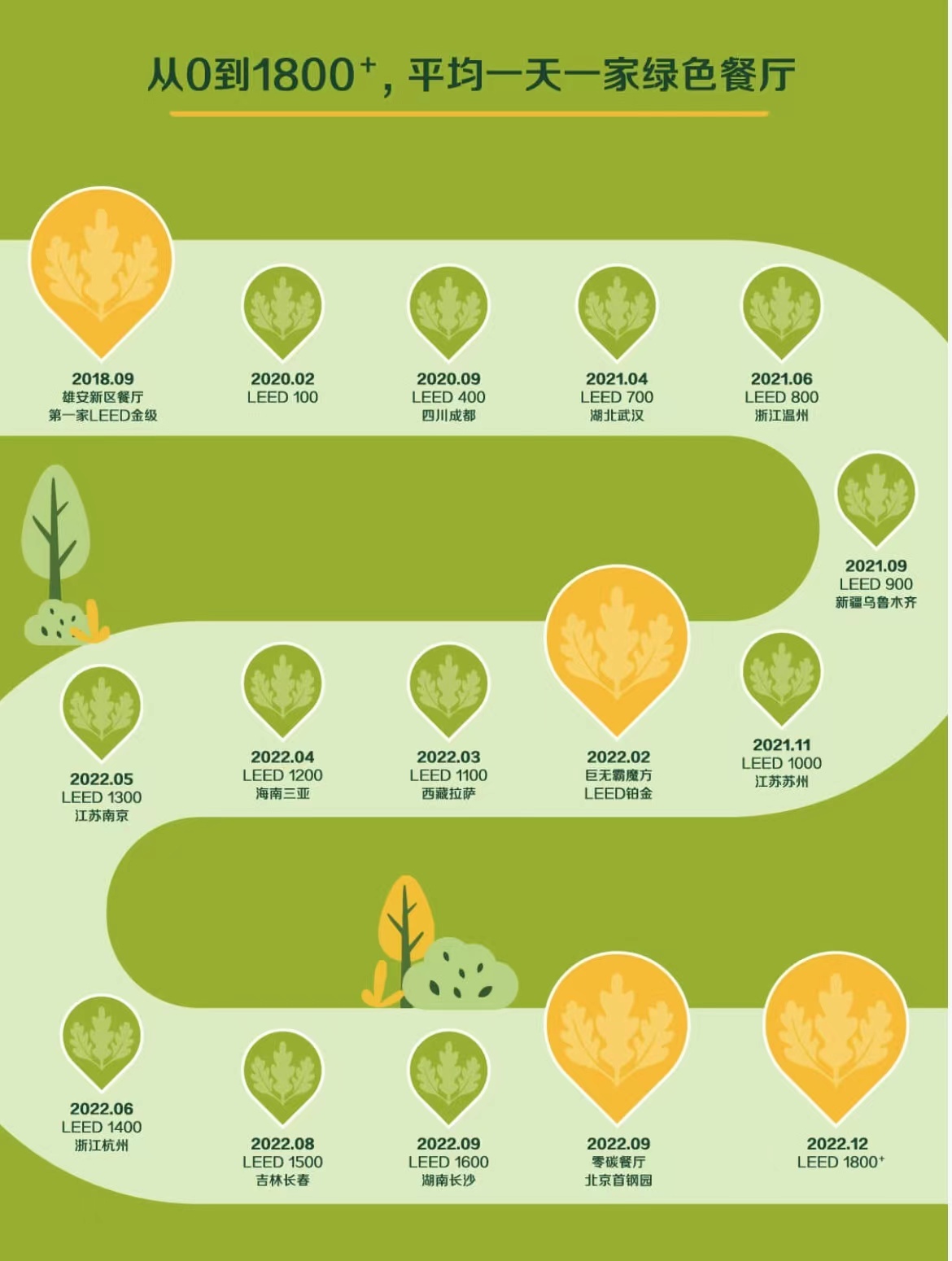麦当劳中国“绿色餐厅”发展里程碑。图片来自麦当劳。