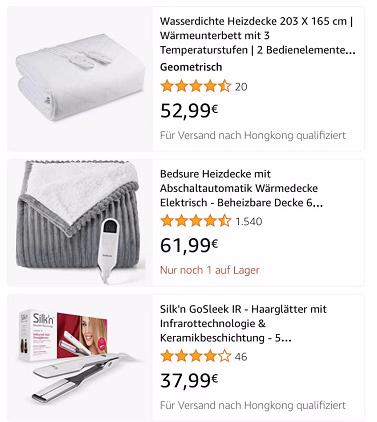 在亚马逊上,电热毯可低至50欧元(约合人民币346)左右,也有100欧元(约合人民币691元)以上的,虽普遍比中国电商平台上的价格高,还是比用天然气划算。