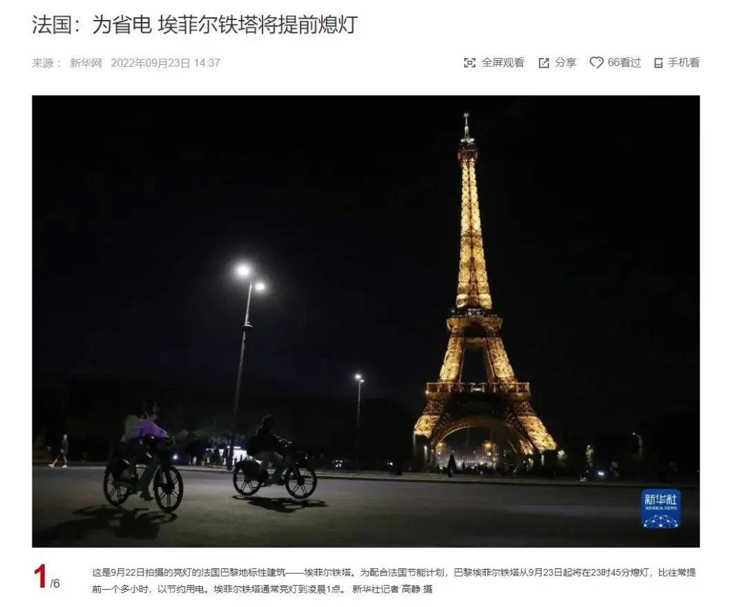 3、法国:提议推出食品券,降低房屋室内温度,节省空调和照明用电;央视新闻9月13日报道,法国埃菲尔铁塔每天提前1小时熄灯省电。