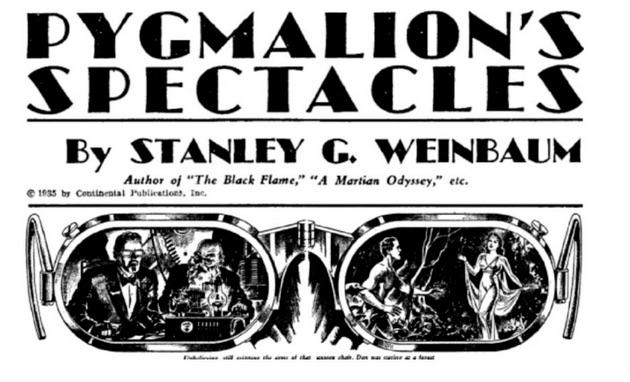 1935年,科幻作家斯坦利·G温鲍姆在小说《皮格马利翁的眼镜》中描述了一款“神奇的眼镜”。通过模拟视觉、触觉、嗅觉、味觉等各种人类感官带来刺激,这款眼镜能够让佩戴者和画面中的世界产生交互,并影响其中的历史发展进程。