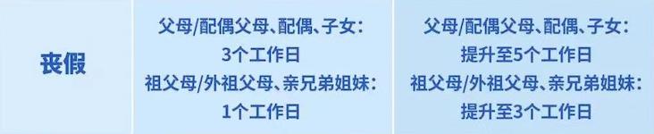 升级前,双方父母、配偶、子女丧假是 3 天,而祖辈以及亲兄弟辈丧假是 1 天。