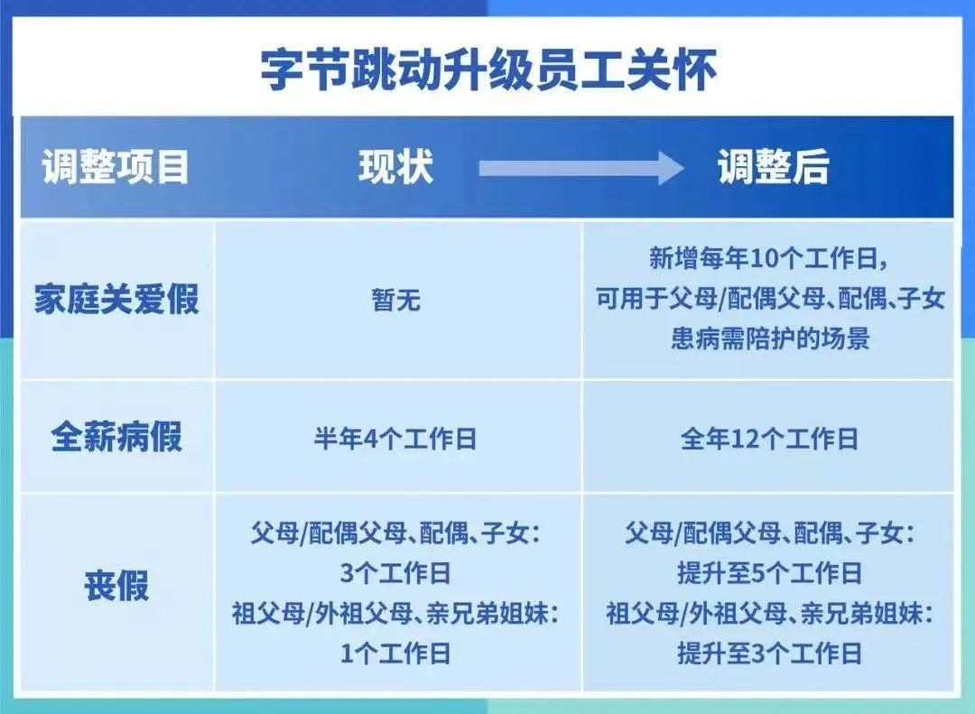 首先,家庭关爱假是新增的,每年 10 个工作日,用来对患病家人进行陪护。
