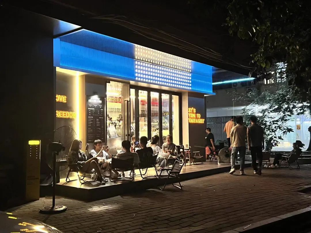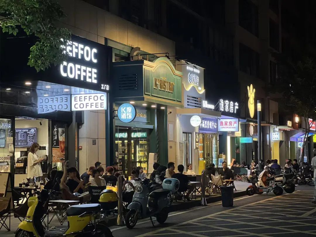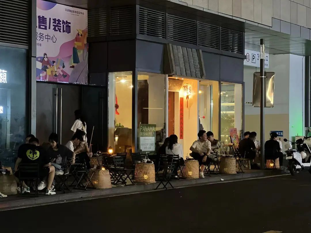 夜晚10点顾客坐满,商业街变成了“咖啡夜市”