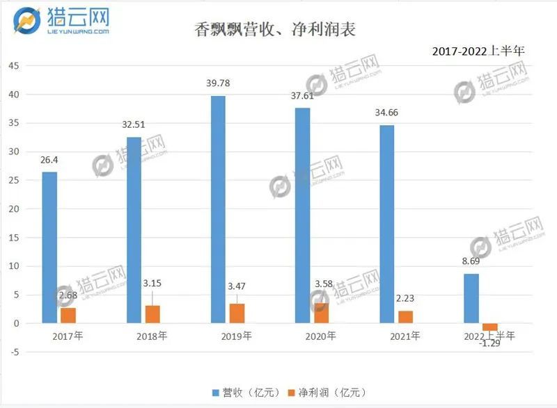 实际上对于香飘飘而言,这不仅是未雨绸缪为未来做筹备,更是当下一条不得不走的道路。2018年-2022年上半年,香飘飘营收分别为32.51亿元、39.78亿元、37.61亿元、34.66亿元、8.59亿元。从业绩上来看,2020年香飘飘出现上市后首度亏损,2021年至今业绩持续承压,尤其是今年上半年归母净亏损1.29亿元,上年同期净亏损6225.6万元,亏损同比扩大108%。