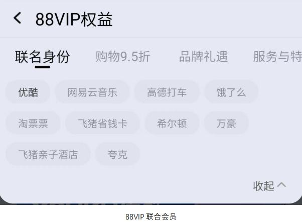 此外,现在平台之间流行联合捆绑促销,也让非官方的租售活动变得更加频繁。如天猫88VIP会员,权益包括优酷视频、网易云音乐、饿了么等多个会员,用户将之分拆卖出即可变现。