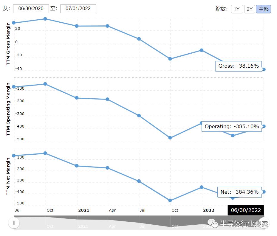 从目前海外上市的激光雷达企业来看,难以获得盈利的财报便是他们的痛点之一。截至2022年6月30日,Velodyne激光雷达的净利润率为-384.36%;Ouster第二季度的净亏损总额为 2800 万美元,低于今年第一季度的3200万美元;Aeva的2022年第一季度收入为110万美元,GAAP运营亏损3410万美元…