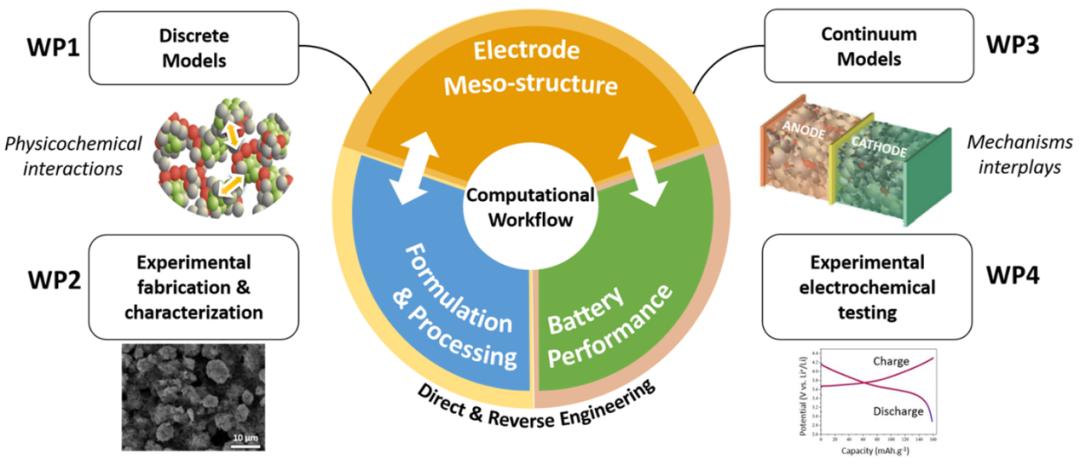 提升锂电池正向设计能力需要从材料-结构-工艺-性能这个四面体关系出发。材料基因组、DFT、MD等方法更多是从材料本征特性出发,筛选出新型正负极、电解液以及粘结剂等材料,开发新的化学材料体系,满足新型电池能量密度、功率或者安全性上的要求。颗粒尺度则更多是从电极微观结构出发提高电池整体性能,并且可以与加工工艺结合,优化工艺参数,实现设计与制造两端协同优化。