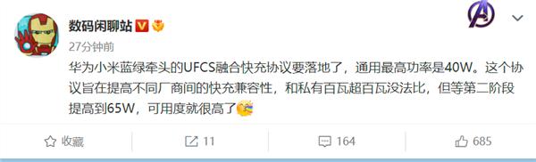 目前,首批支持 UFCS 1.0 融合快充认证的设备,这些产品除了支持原本品牌自有等快充协议之外,也都支持 40W 的 UFCS 1.0 融合快充协议,后续 UFCS 也会继续提高品牌间的标准通用性,第二阶段的目标为 65W。
