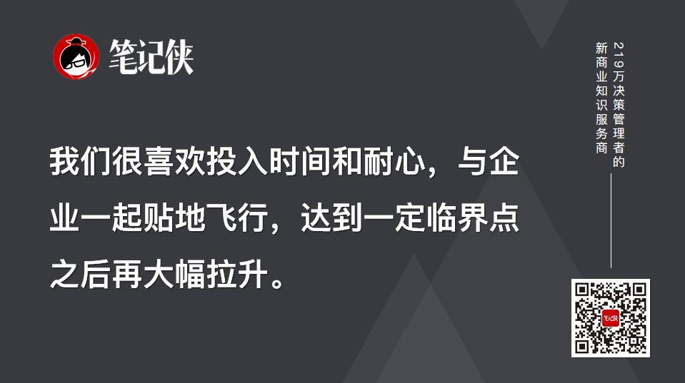 一上来就直线火箭式的增长,甚至指数型增长,或者资本一介入就马上翻倍增长的企业基本很少看到,不大可能的。所以我们很喜欢投入时间和耐心,与企业一起贴地飞行,达到一定临界点之后再大幅拉升。