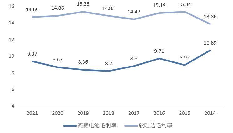 通过与德赛电池对比不难发现,欣旺达的综合毛利率常年维持在15%左右,远高于德赛电池,如果剔除掉欣旺达动力电池业务近几年对毛利率的拖累,欣旺达与德赛电池的毛利率差距将会更大。