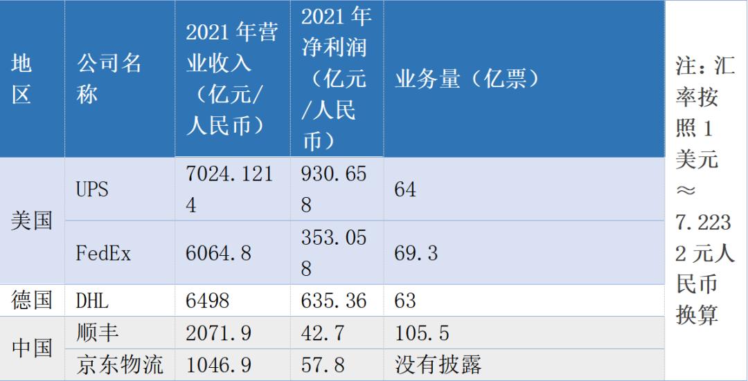 从业务量上来看,顺丰和京东远远大于国际同行,但是在营收和利润上,差距可以说是天地之差。