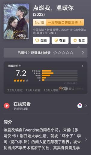 而演员和剧本也需要根据导演指示进行剧集创作,导演对剧本进行处理,其展露的镜头世界需要观众充分理解,镜头语言能为影视剧赋予更多色彩。以《点燃我,温暖你》为例,那些让人尖叫的镜头氛围是让观众沸腾的重要原因。倘若三者都在线,那么收获大票观众则如同探囊取物。