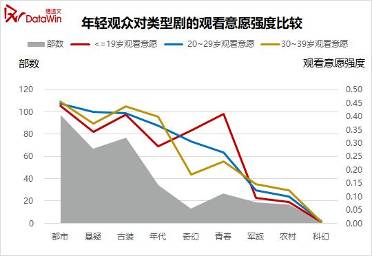 对年龄进行换算,可以发现主要受众为90后、00后少女。可以说,这一部分人的青春岁月中,多多少少有青春疼痛文学的影子,她们或许是影视原著IP粉,或许是青春疼痛的纪念者,或许是影视演员的粉丝,又或者只是容易接受安利的普通观众。对其观看意向分析,都市+青春可谓正中下怀。而剧目改编和营销点也基本上会做年轻化处理,比如时下流行的超话运营、cp营业和ost合唱互动等,让该类剧集最大程度渗透至目标人群。