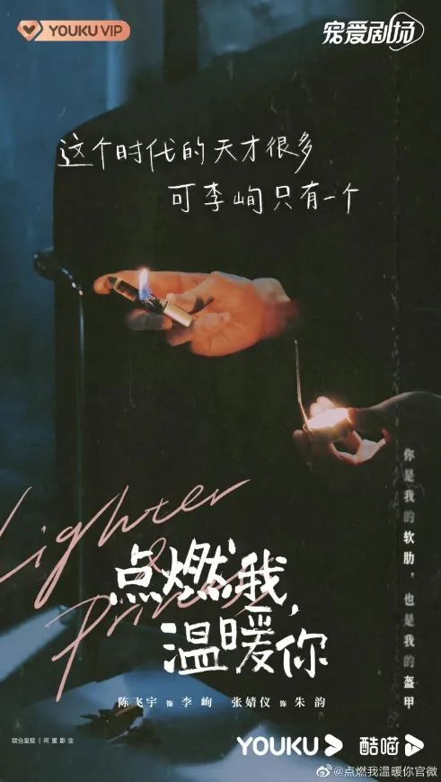 这是《点燃我,温暖你》原著小说《打火机与公主裙·荒草园》《打火机与公主裙·长明灯》的文案,也是女主角朱韵的爱情信条,确实难掩中二气息,却并不妨碍剧集热度一路走高。