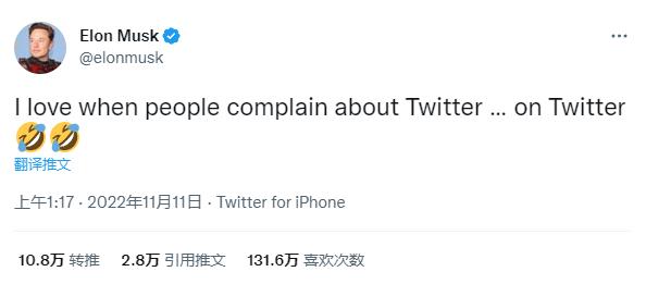 马斯克还表示:“我就爱看你们在推特上骂推特。”|Twitter
