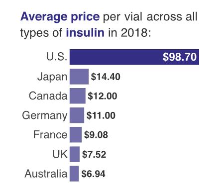 美国的胰岛素价格远高于其他发达国家,如今如果不使用医疗保险,部分患者每月要支付超过1000美元购买胰岛素 [6]。