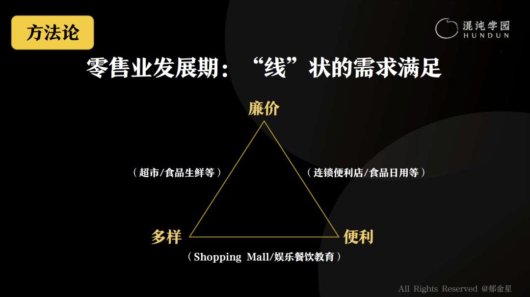 分析完经营阶段不同的击穿过程,我们再梳理胖东来的经营“一”战略的进化。在破局期1995年到1997年的时候,外部的十倍速红利是“一个商品匮乏的时代”,内部的核心竞争力是“量贩”的模式。这一时期符合普通老百姓马斯洛需求理论的生理安全阶段。