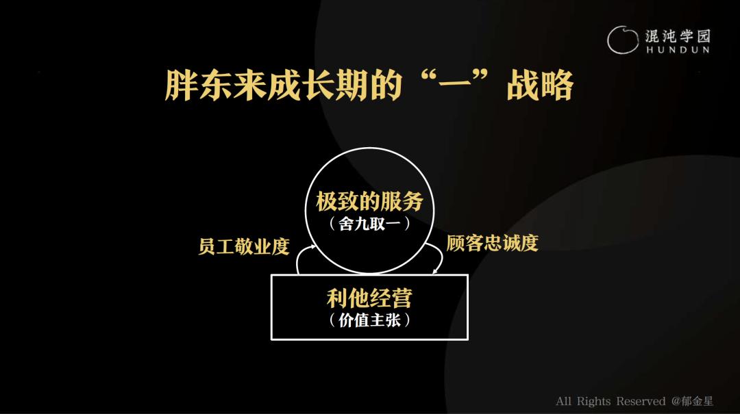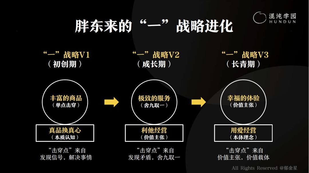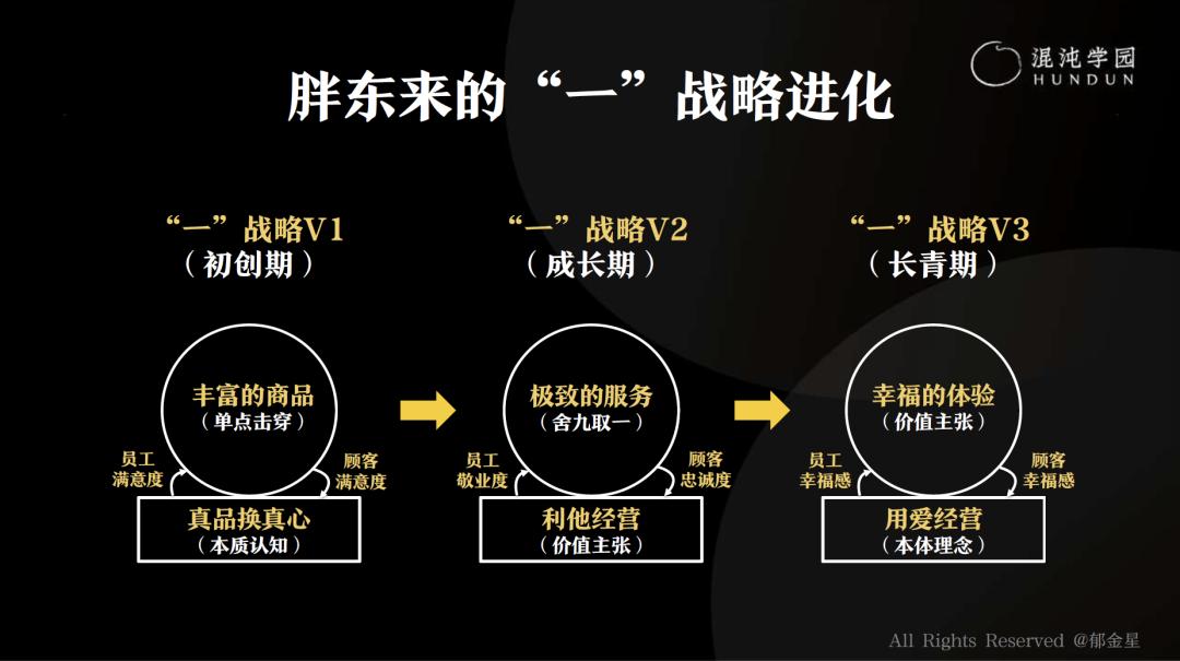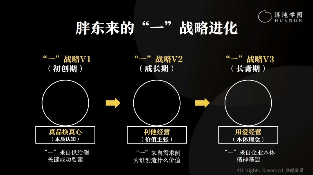 我们再去总结一下于东来经营的“一”战略,它是怎么进化的?