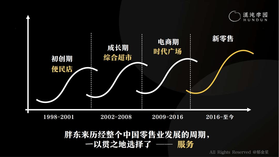 然后到了胖东来的成长期,这时外部的十倍速变化就变成了服务经济的时代,核心竞争力就变成通过极致的服务能力给到消费者归属感和尊重感。