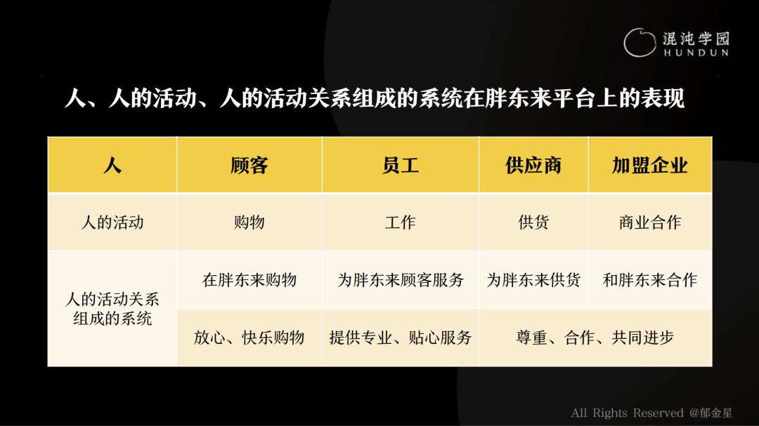 于东来对企业的认知是不一样的,他把企业比作是人,是人的活动,是人的活动关系组成的系统。