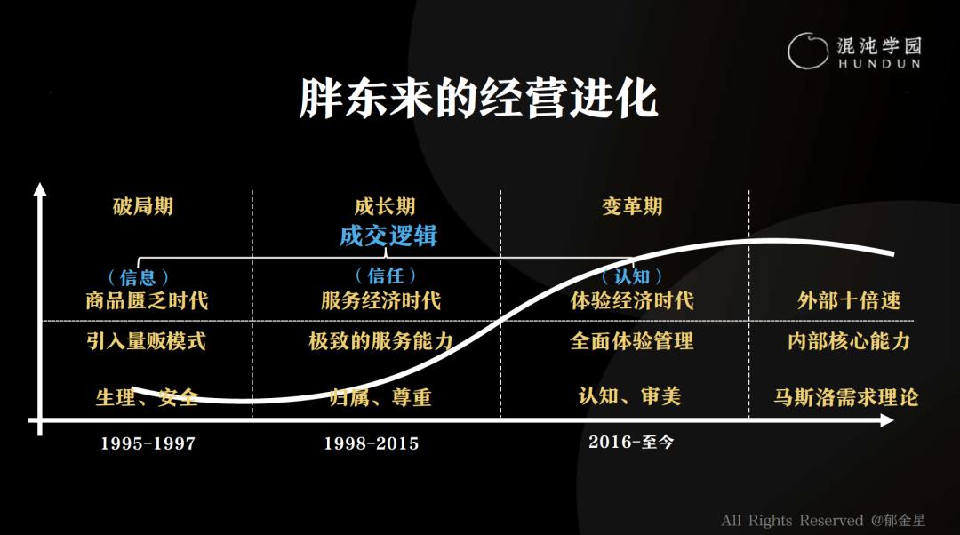 在商品匮乏的时代通过信息来成交,服务经济的时代是通过信任来成交,到了体验经济时代则是通过能否提升顾客认知来成交,这就是胖东来的经营进化。