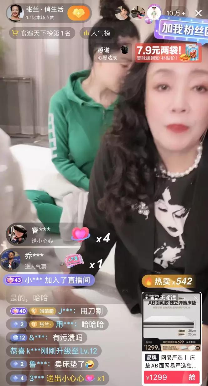 借此“火”了一把的不只有海丝腾,不少床垫品牌借着热度开始宣传。这两天,张兰已经在直播间开卖“网易严选”旗下的床垫。