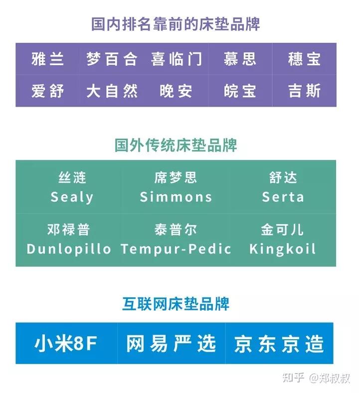 国内外知名床垫品牌一览 ,图源 / 知乎用户郑叔叔