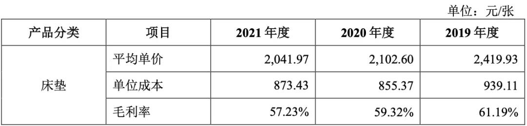 这种“成本低、售价高”的现象,在慕思的招股书中也得到了验证。招股书显示,慕思的床垫单位成本不足千元,平均单价是2千元以上。