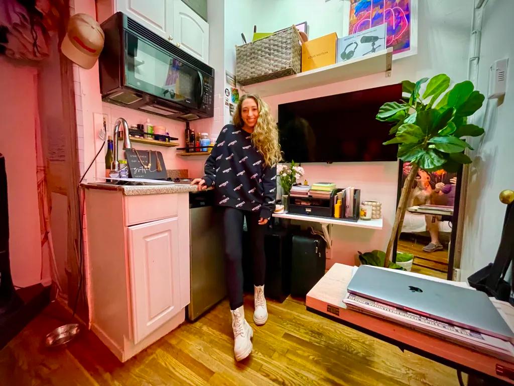 几年前媒体们还一脸震惊地报道着“开门就是床”的合租生活,如今却可以去挖掘十几平米里的别样人生,甚至传授一些极端蜗居的小妙招。比如在曼哈顿租房的时尚编辑Alaina Randazzo,每月付着650美元(约合4590元人民币)房租,全家含厨房和卧室只有7平米。别看环境如此逼仄,这间公寓也极为抢手,Alaina看房时差点被其他租客抢走。