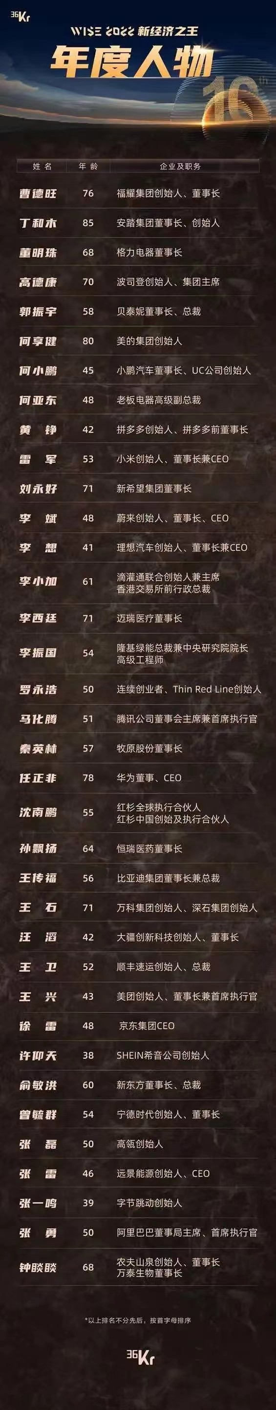 11月28日,36氪公布WISE2022新经济之王年度人物榜单,共计36位企业家入选,其中包括河南籍企业家张磊和秦英林。
